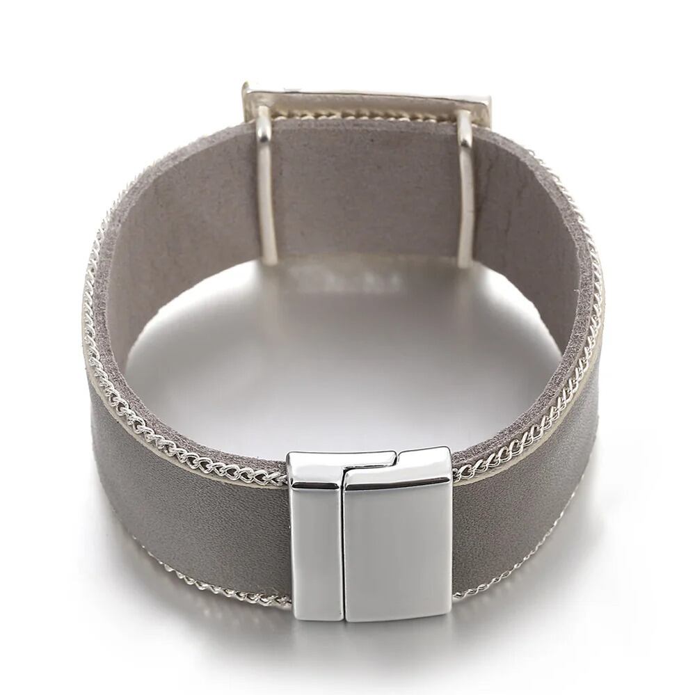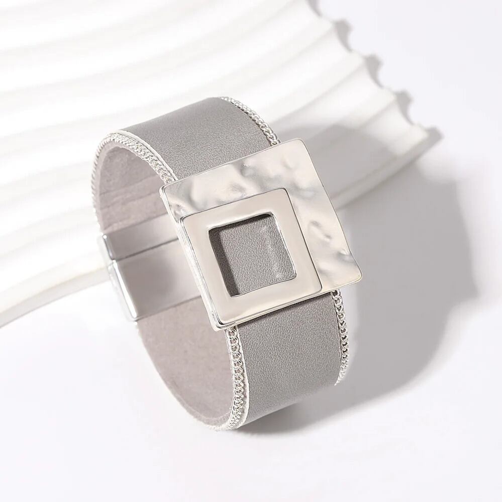 ビンテージ 透かし 幾何学 四角 スクエア ラップ 幅 ブレスレット レディース メンズ BOHO パンク グレー レザー ジュエリー ギフト