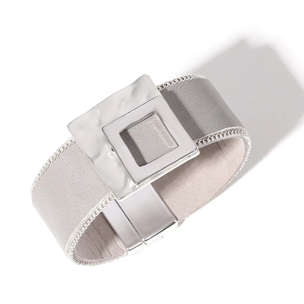 ファッションブレスレット:中空幾何学スクエアラップワイドブレスレット