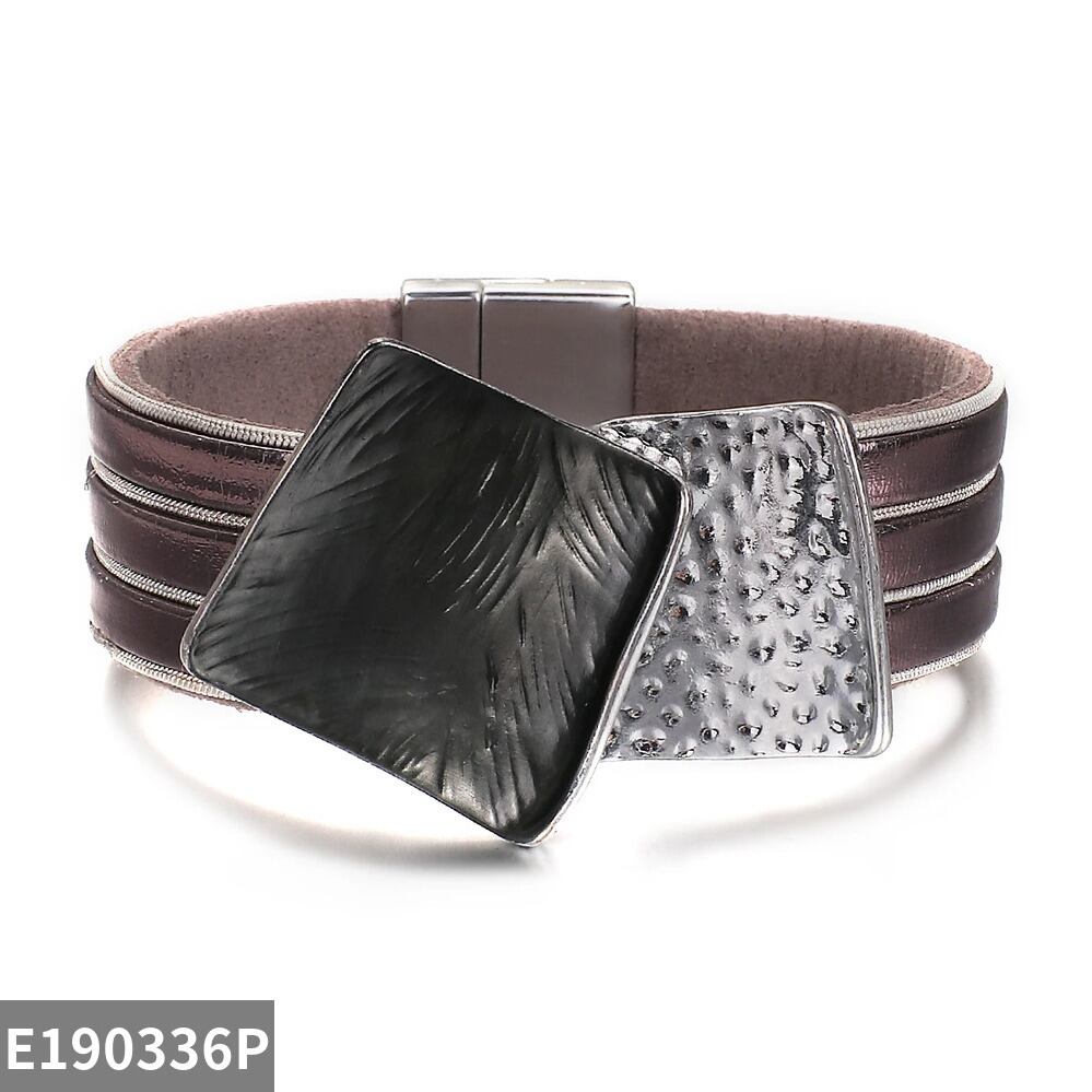 パンク チャーム エナメル レザー ブレスレット レディース メンズ ビンテージ 幾何学 四角 スクエア ラップ バングル BOHO ジュエリー