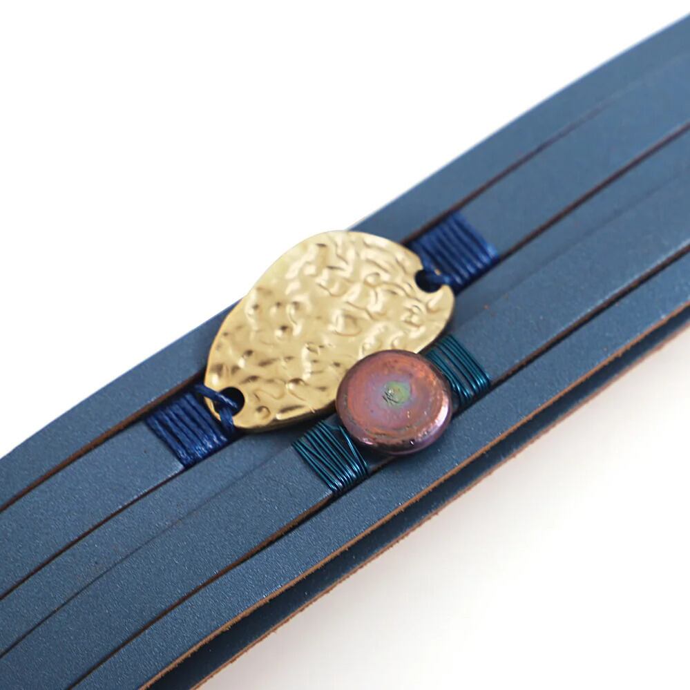 チャーム バングル ブレスレット レザー メタル パール レディース 多層 マルチレイヤー イレギュラー ナチュラル 幾何学