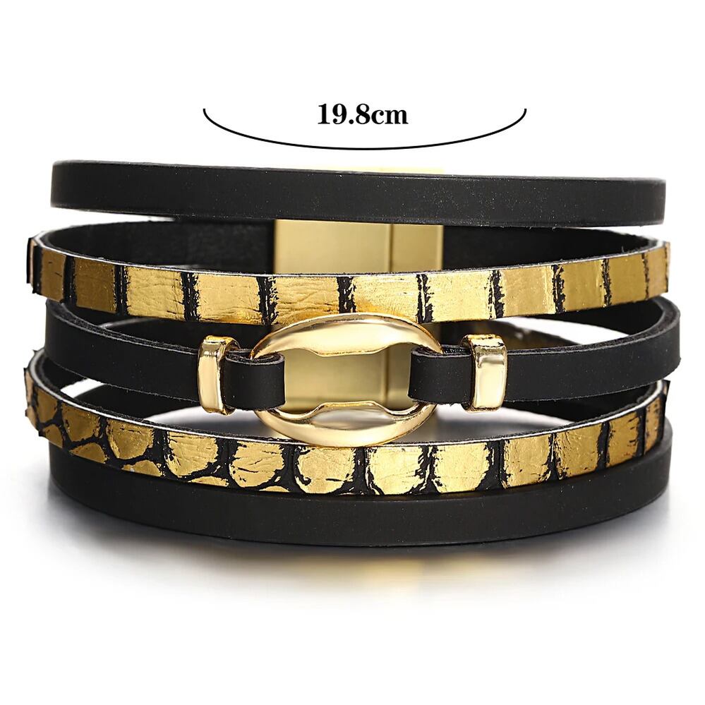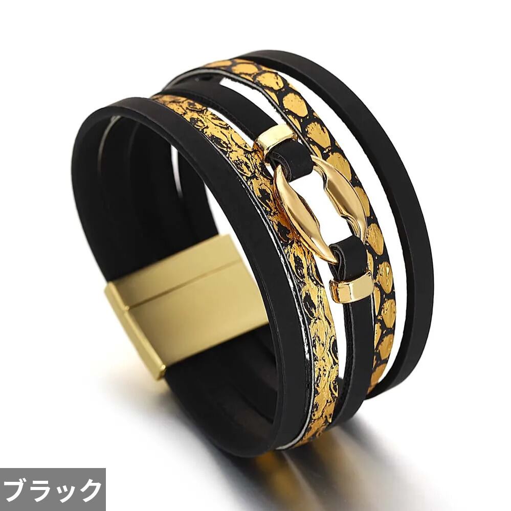 ファッションブレスレット: チャームボヘミアンゴールドカラーの魚鱗プリント多層ラップレザーブレスレット
