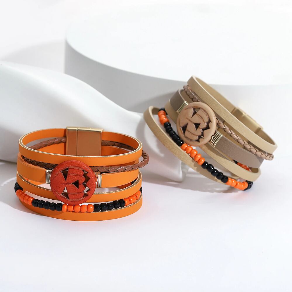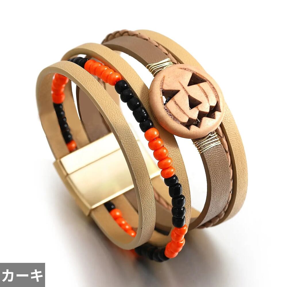 ゴシック ハロウィーン かぼちゃ 植物 プラント 野菜 ブレスレット レディース レトロ ゴースト ビーズ 織り 多層 マルチレイヤー ラップ レザー チャーム ジュエリー