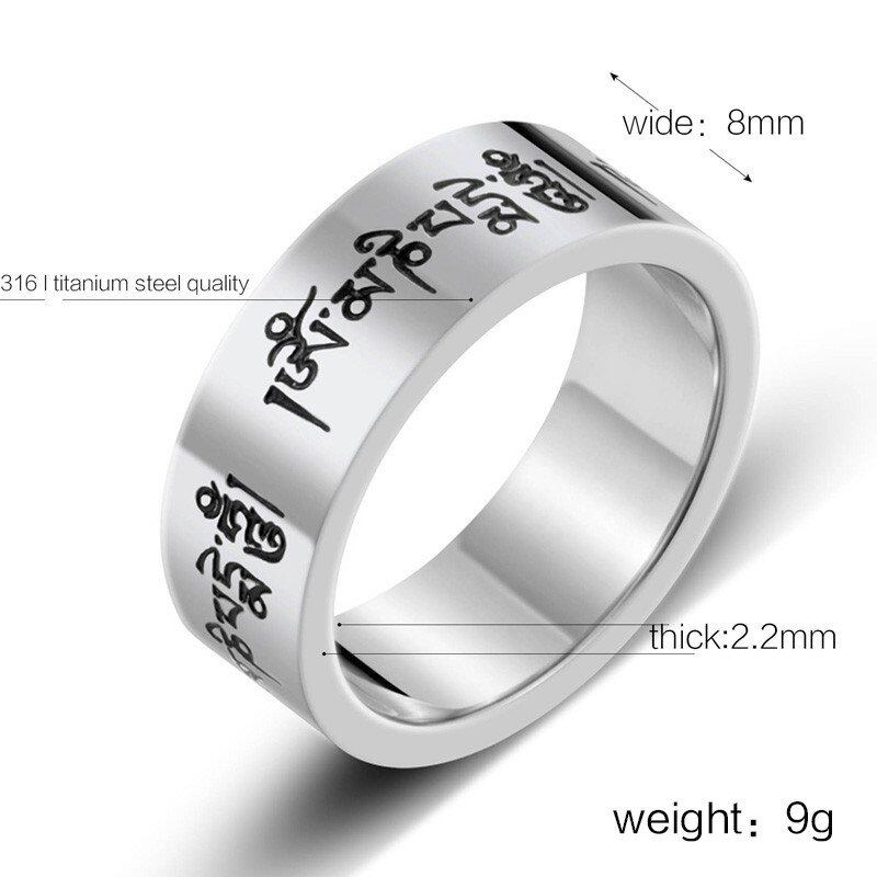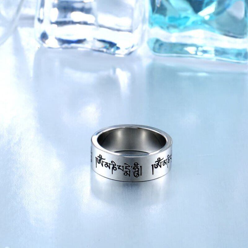 ファッション メンズ ポリッシュ ステンレス 仏教 マントラ リング ラッキー ジュエリー
