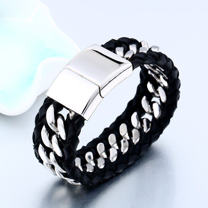 316L ステンレス 1 ピース レザー ブレスレット バングル パンク ヒップ ポップ ジュエリー