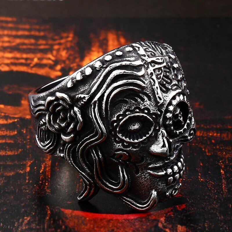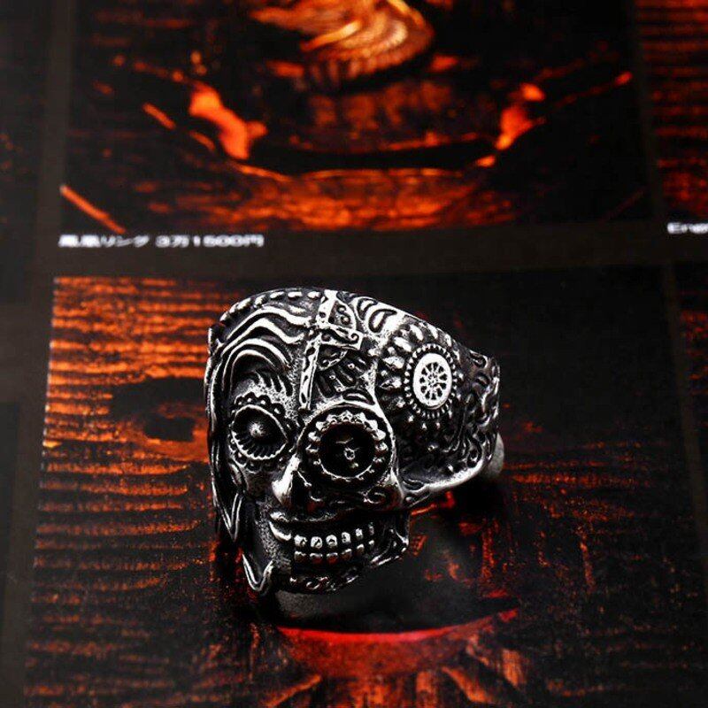 ユニセックス パーティー リング ステンレス 花 フラワー スケルトン リング クロス ヒップホップ パンク 岩 ジュエリー ギフト 552