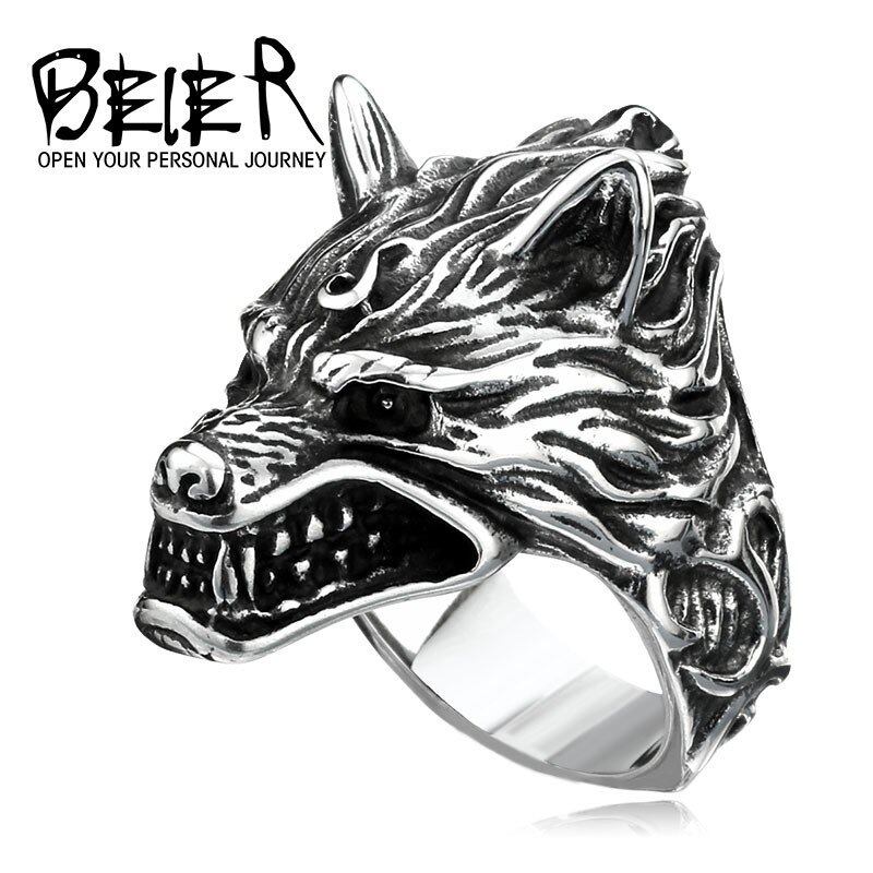 ステンレス 狼 頭 リング アミュレット パンク ファッション アニマル動物 ジュエリー ベスト ギフト友人 160