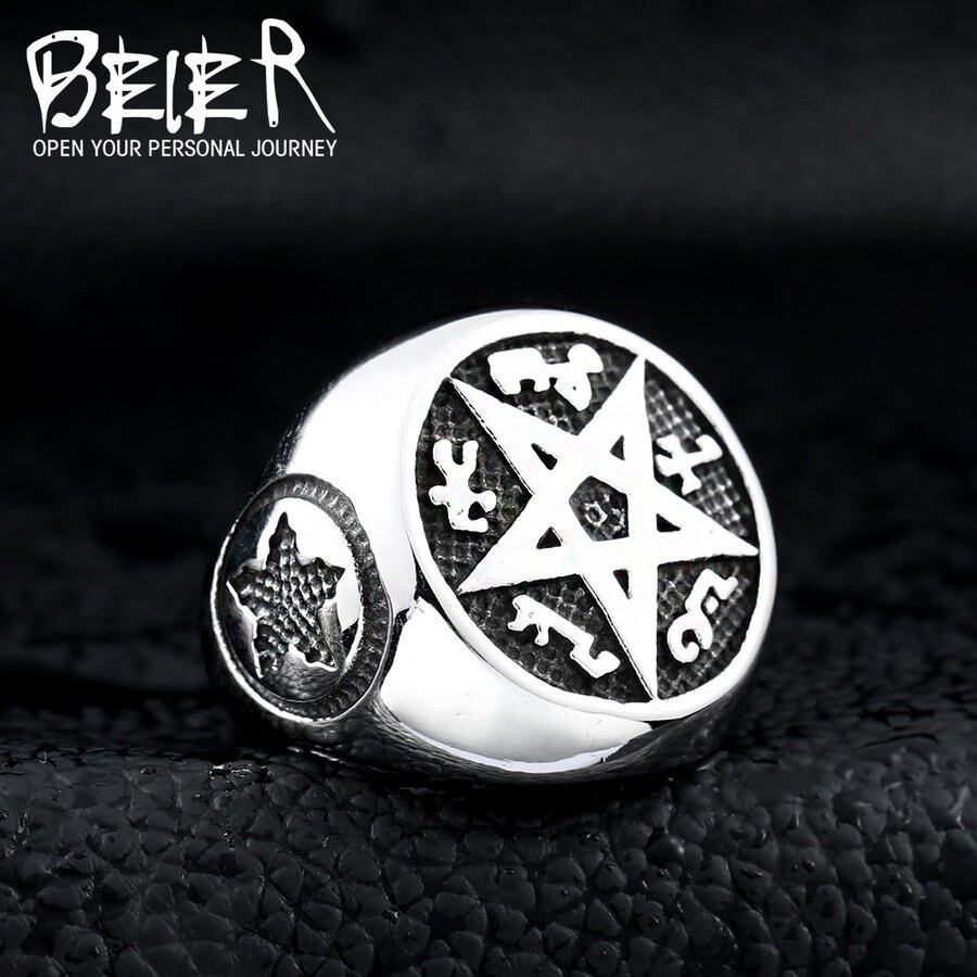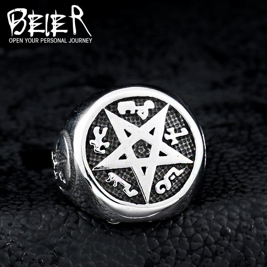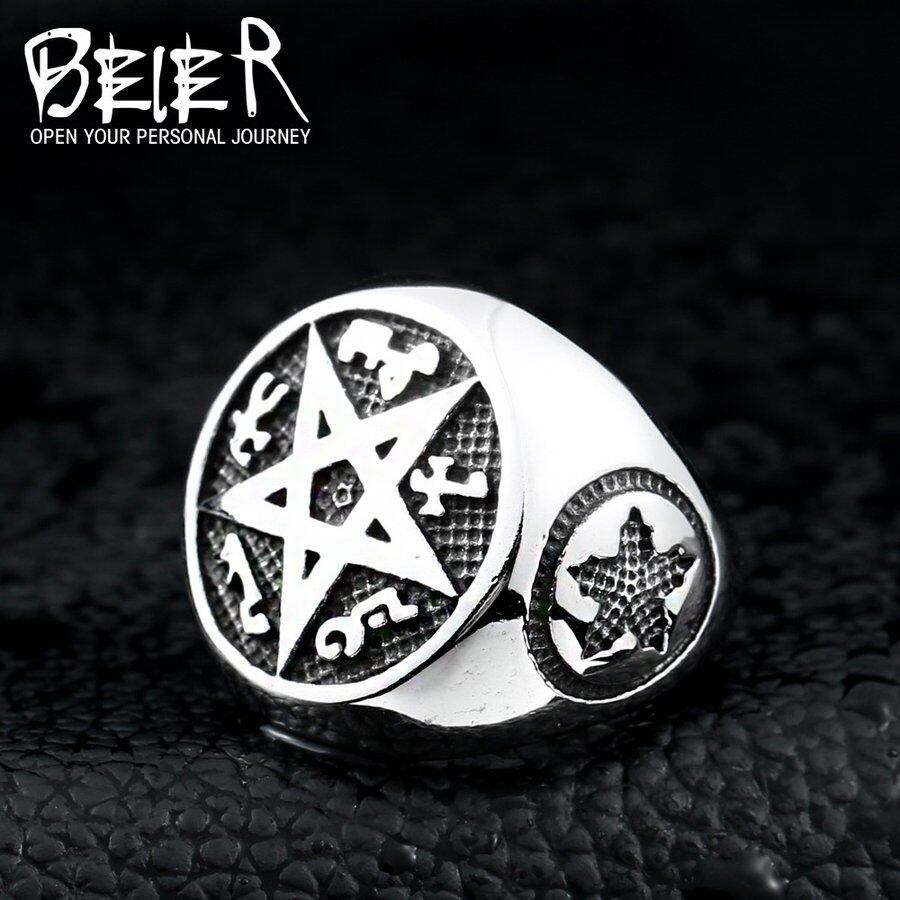 超自然 デザイン クール パンク 大きい 五芒星 五芒星 リング ファッション パーティー バイカー ジュエリー 165