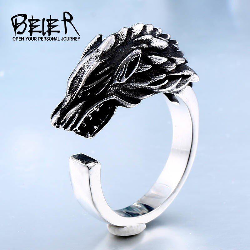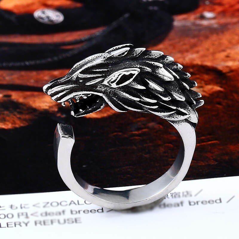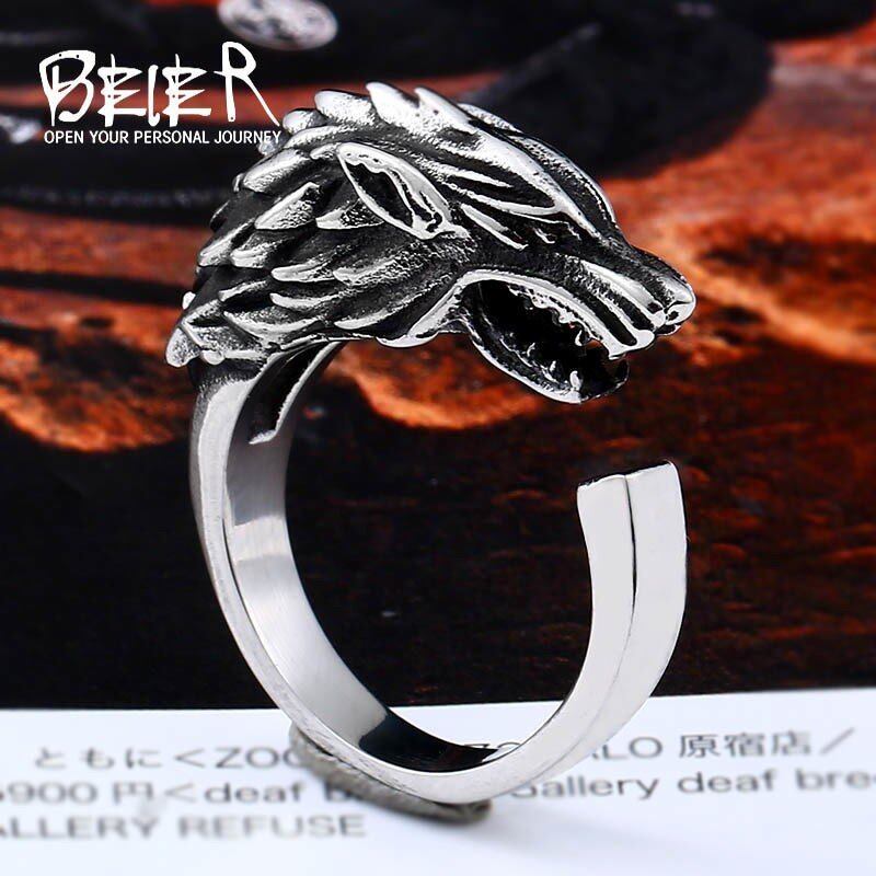 ステンレス ゲーム 王座 氷 アイス 狼 家 強く バイカー アニマル動物 オープン リング ファッション ジュエリー 477
