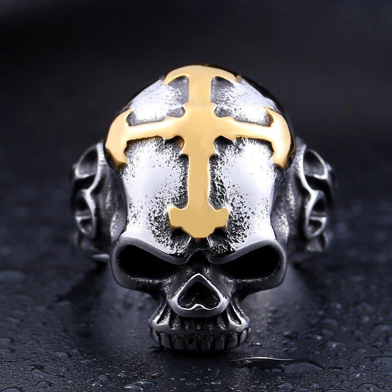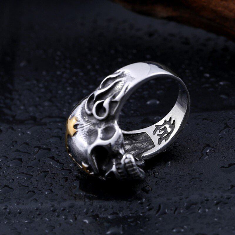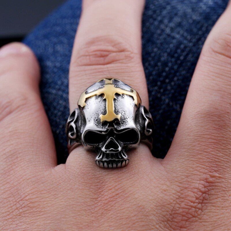 パンク バイカー クロス 牙 スケルトン リング ステンレス スケルトン スタイル ジュエリー 140