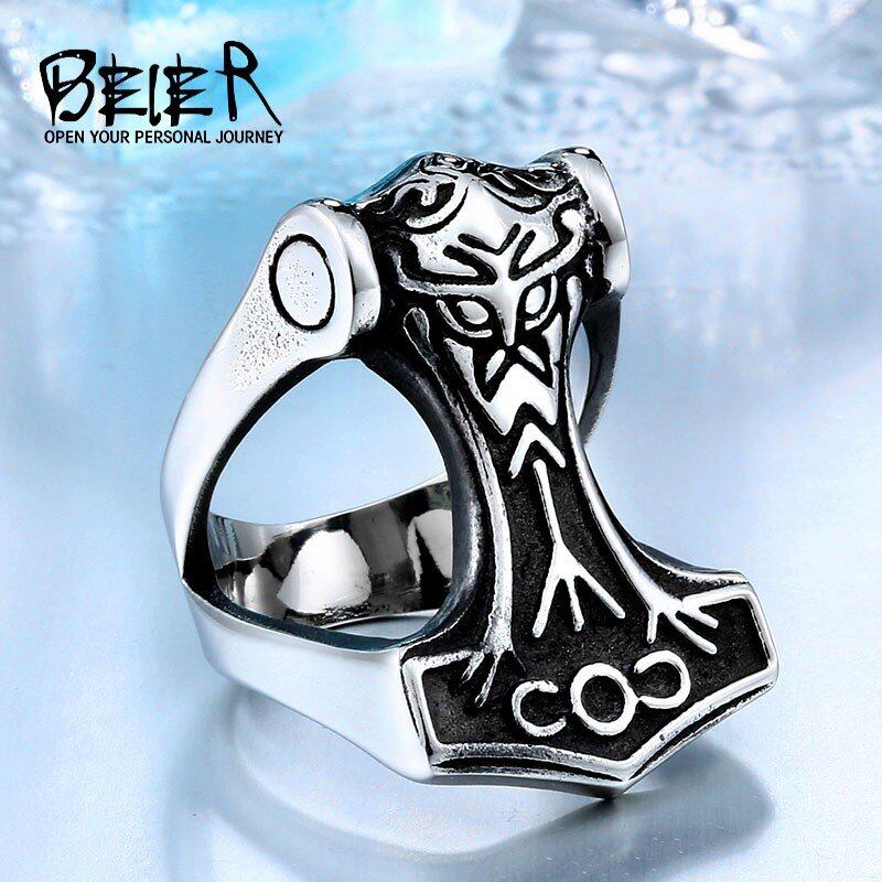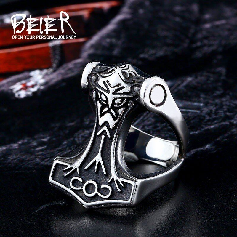 ユニーク デザイン 316L ステンレス ファッション 北欧 ヨーロッパ ヨーロッパ リング ノルディック 神話 トール ジュエリー 441