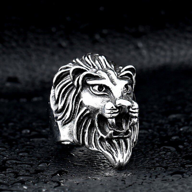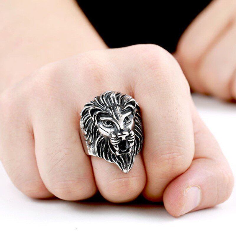 【送料無料】 メンズ リング 指輪 ステンレス クール アニマル動物 ライオン 頭 パンク 人 10000290