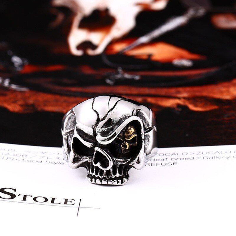 スケルトン 眼 目 悪の バイカー ステンレス リング パンク ゴシック スタイル ジュエリー サイズ