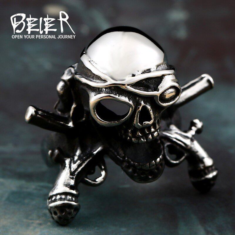 クール バイカー 海賊 スケルトン ステンレス チタン スーパー パンク リング 370