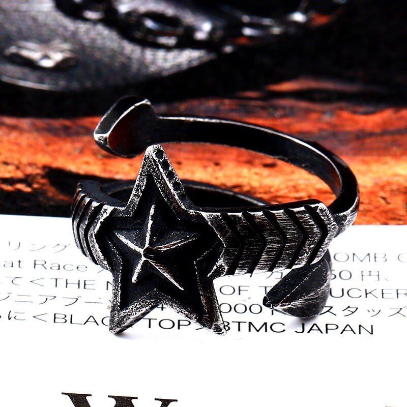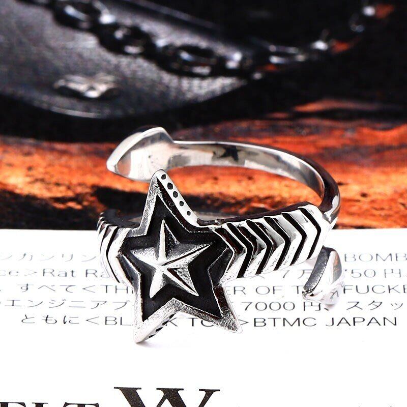 デザイン ステンレス ファッション フリーサイズ 五芒星 リング レディース オープン ジュエリー ギフト 443