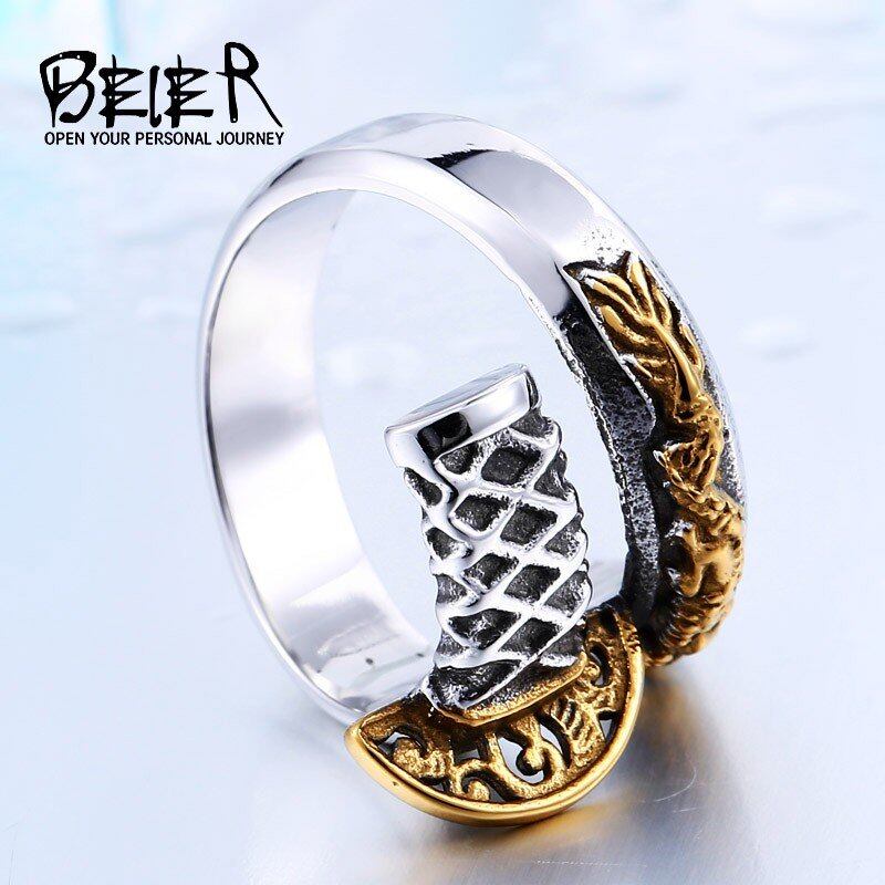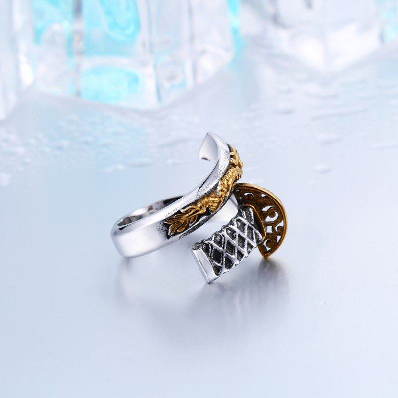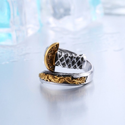 タイ 日本語 オープン 武士 剣 ナイフ メンズ ゴールド リング ユニーク フェード ジュエリー 405