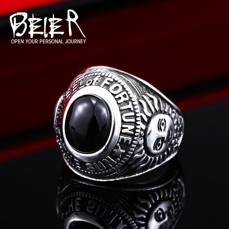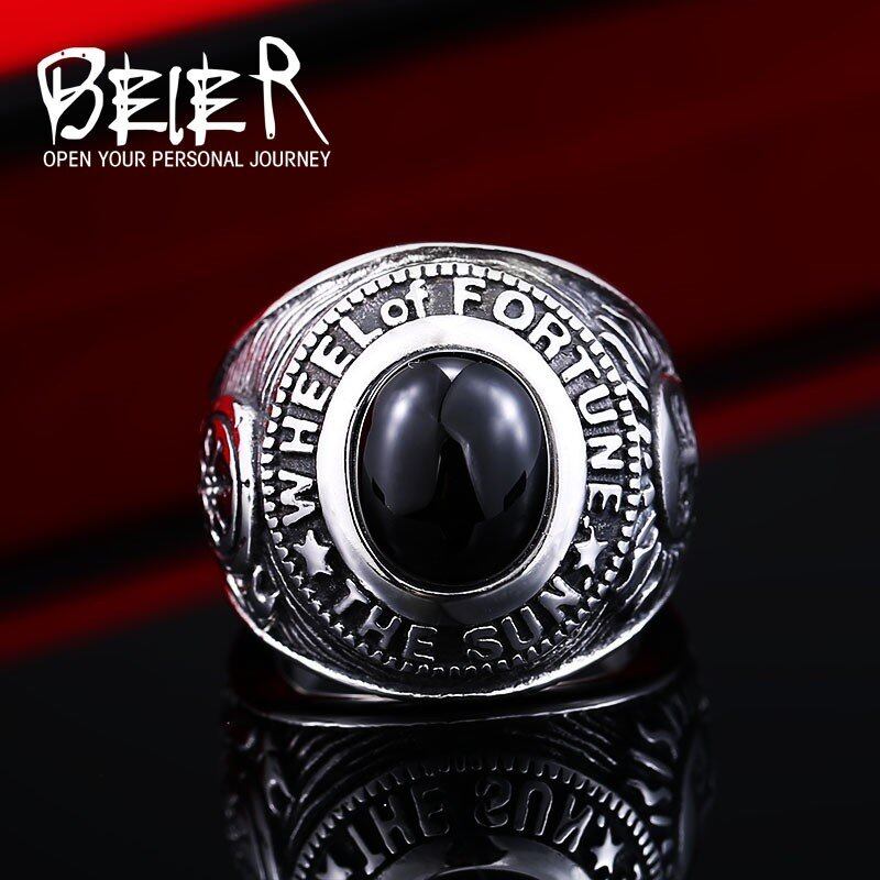 ステンレス クール ユニーク 黒 ブラック 石 ストーン チタン ホイール幸運 タロット 黒曜石 リング 335