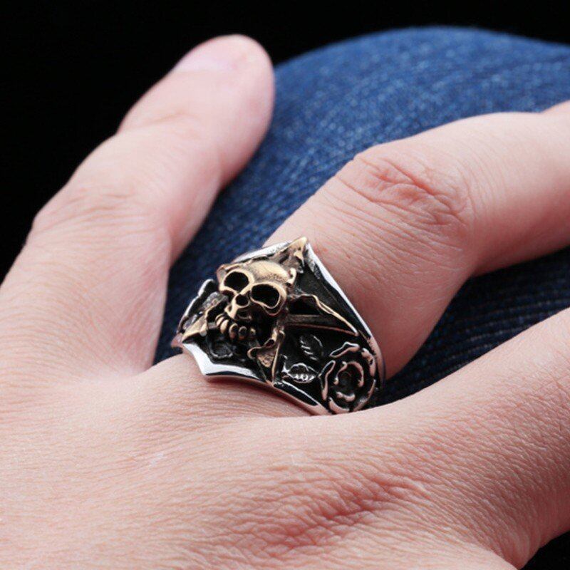 ファッション スケルトン パンク 紳士 人 リング 指数 指 五芒星 メンズ ジュエリー 425