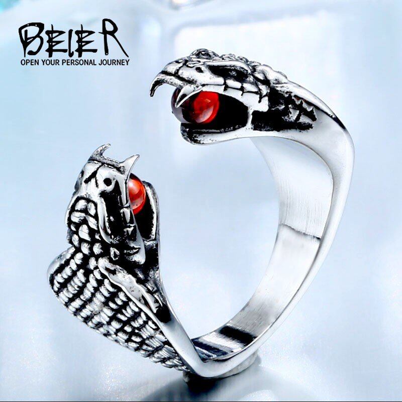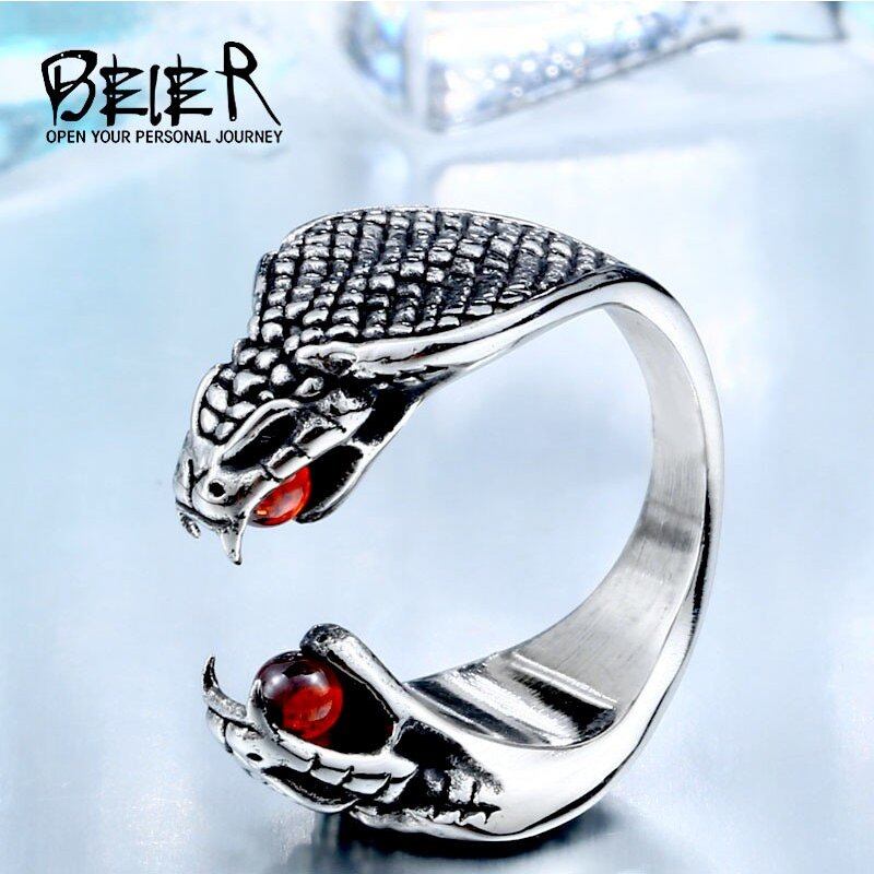 クール バイキング ヘビ 赤 レッド ステンレス キュービックジルコニア 石 ストーン トレンディー アミュレット アニマル動物 リング 326