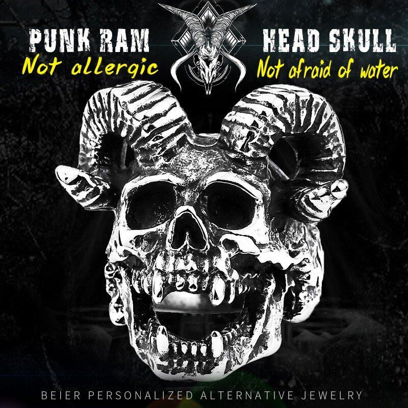 316Lステンレス 山羊 頭 スケルトン クール パンク メンズ リング 人 スタイル ジュエリー 406