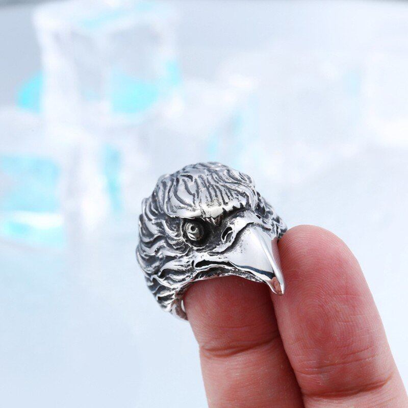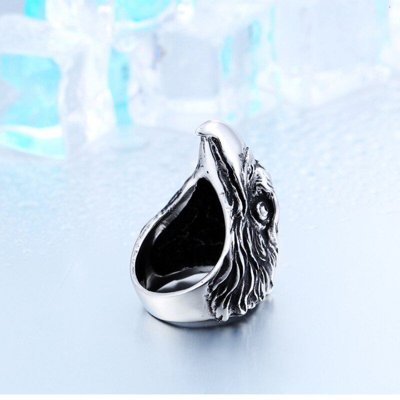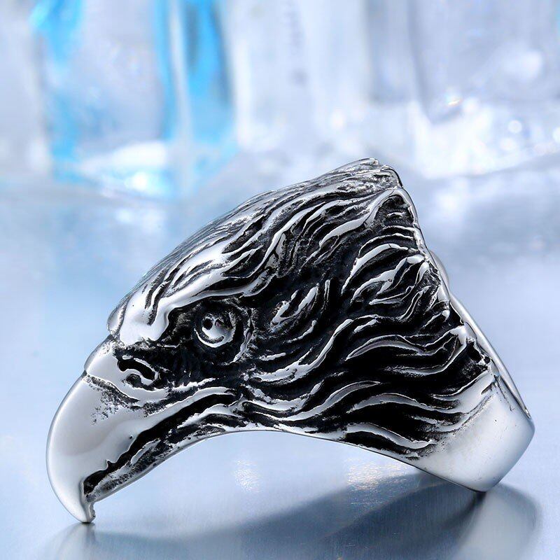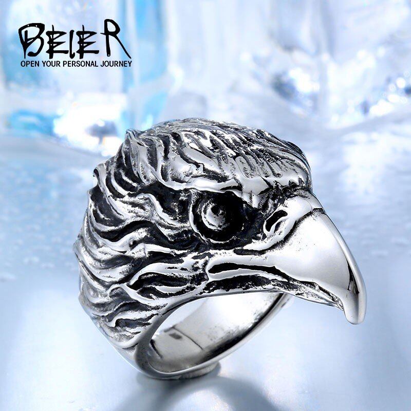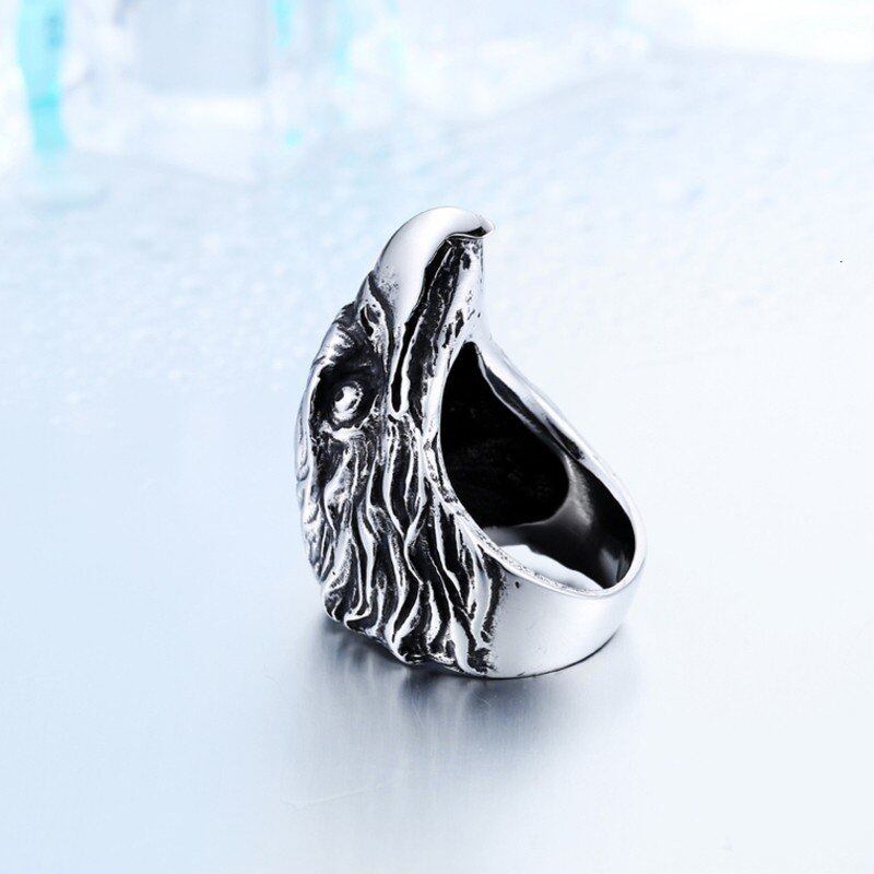 316L ステンレス バイカー ジュエリー クール パンク 3D イーグル 頭 アニマル動物 リング ギフト 436