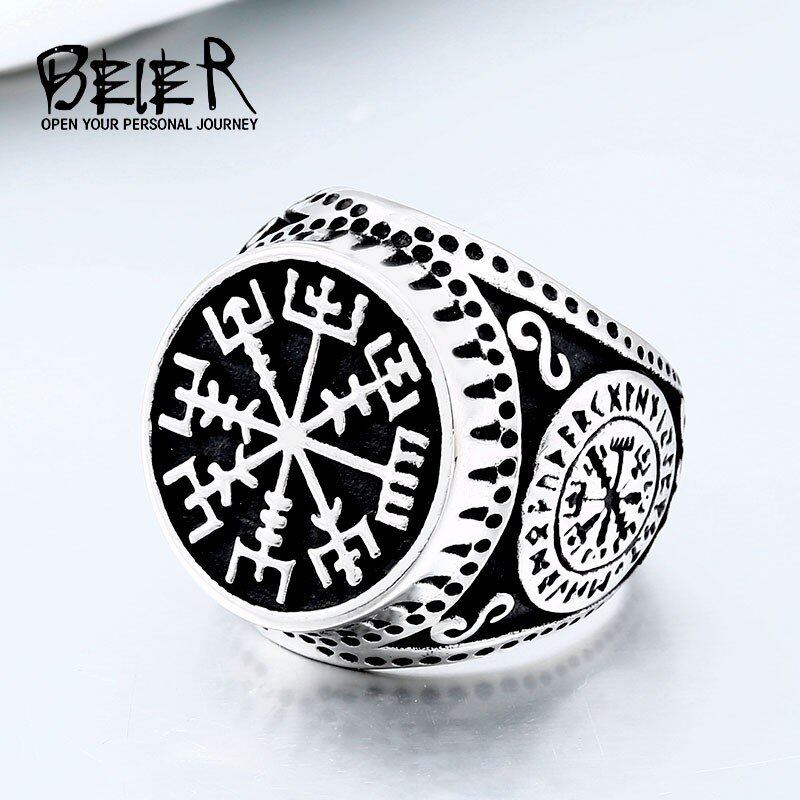 316L ステンレス ノルディック 舵 バイキング マジック ルーン アミュレット リング 549