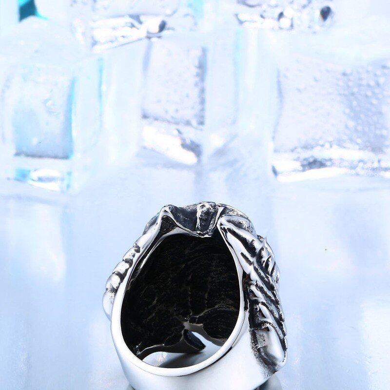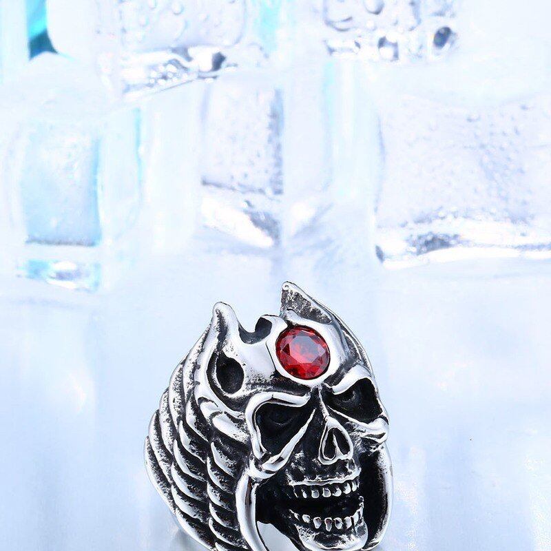 ヒップホップ 316L 316Lステンレス 翼 ウィング スケルトン 赤 レッド 石 ストーン クール パンク リング ジュエリー 415