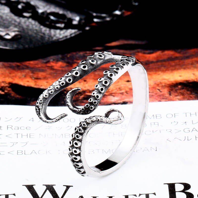 クール リング チタン ゴシック 深い 海 たこ リング ファッション ジュエリー オープン フリーサイズ サイズ