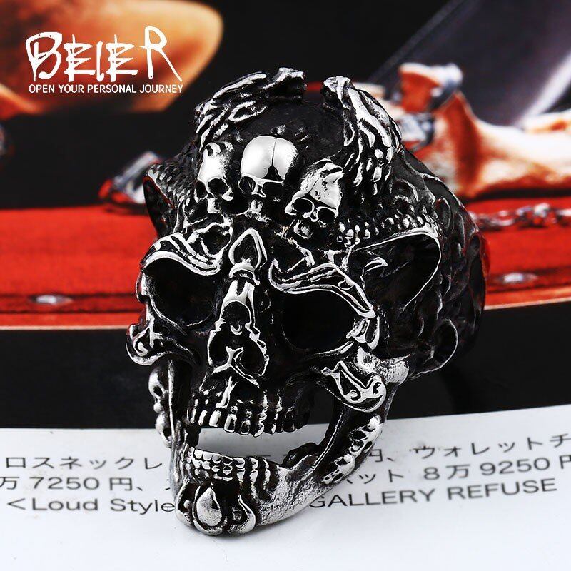 パンク クール 3 スケルトン ファッション 大きい リング ステンレス チタン パンク ファッション ジュエリー ハロウィーン パーティー 526