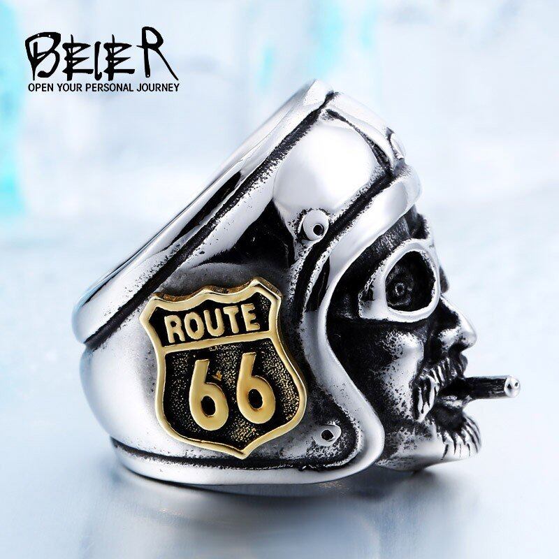 オートバイ メッキ ゴールド ステンレス ユニーク ルート 66 mc クラブ バイカー リング 378