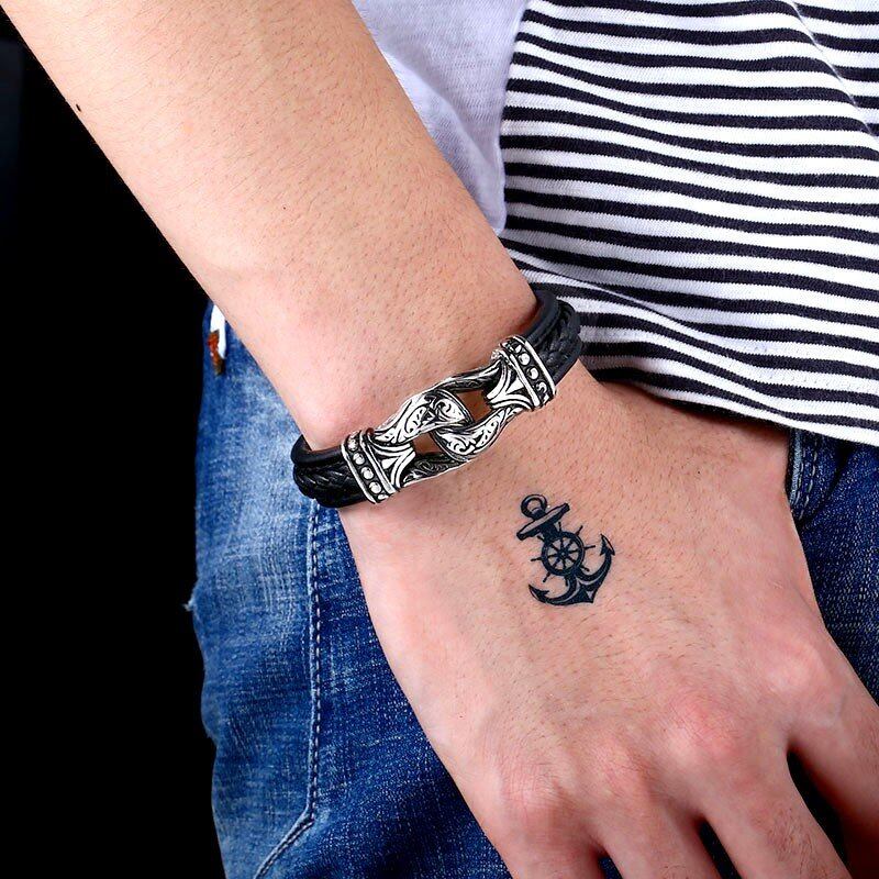 【送料無料】 メンズ ブレスレット バングル 17cm 25cm ヨーロッパ セルティック ハンマー レザー ラップ 10000477