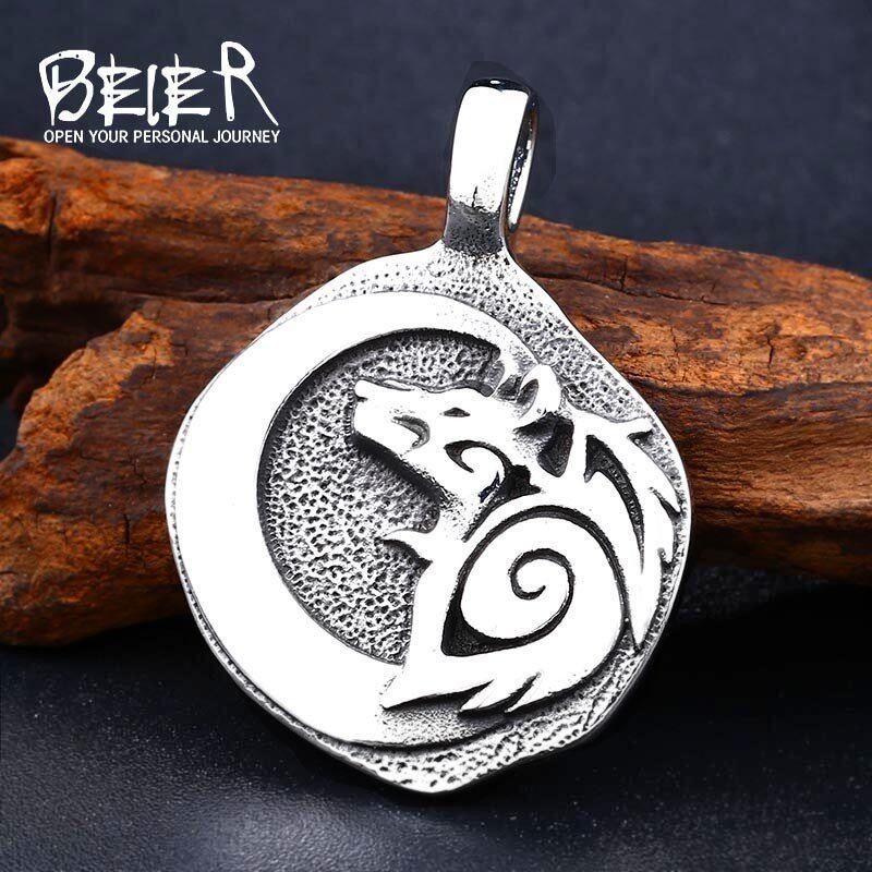 【送料無料】 メンズ ネックレス 狼 烏 ペンダント ノルディック チャーム 10000526
