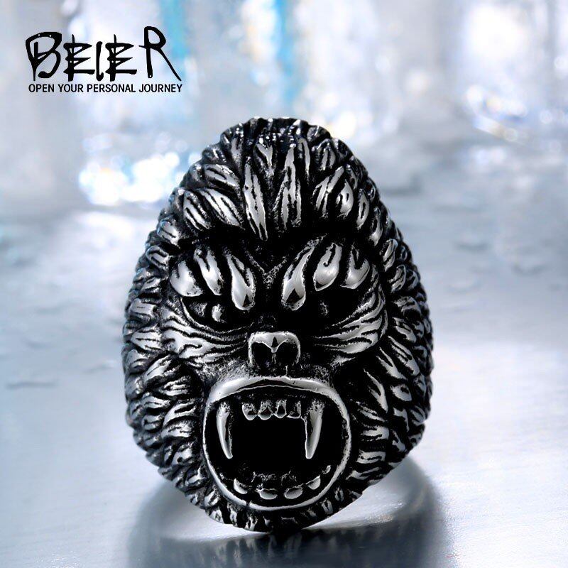 パンク クール ファッション デザイン チタン 人 ゴリラ アニマル動物 リング レトロ ジュエリー 456