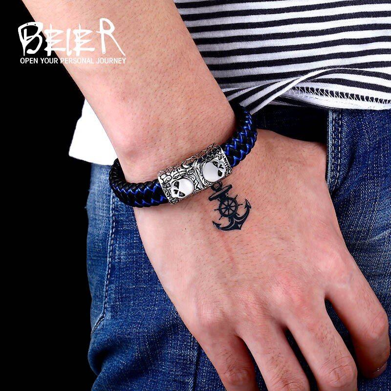 【送料無料】 メンズ ブレスレット バングル レザー スケルトン 10000538