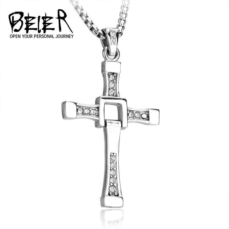 【送料無料】 メンズ ネックレス クリスタル ステンレス クロス ペンダント 石 ストーン シルバー メッキ ゴールド カラー 10000595