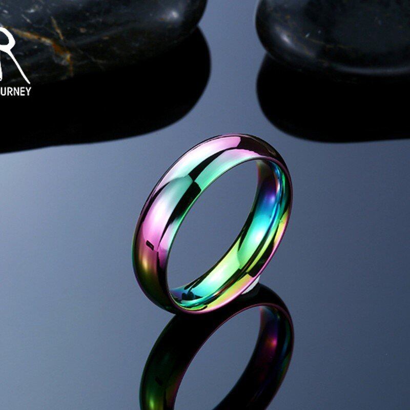 虹 リング メンズ ブランド ユニーク ポリッシュ ステンレス シンプル ジュエリー