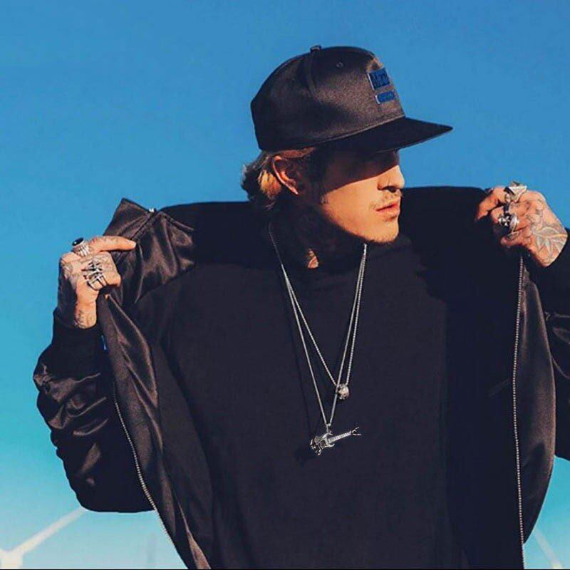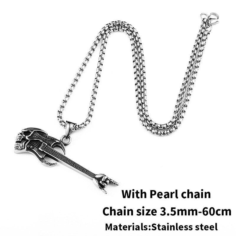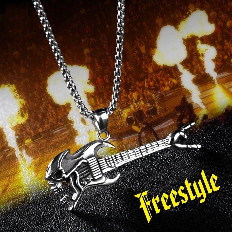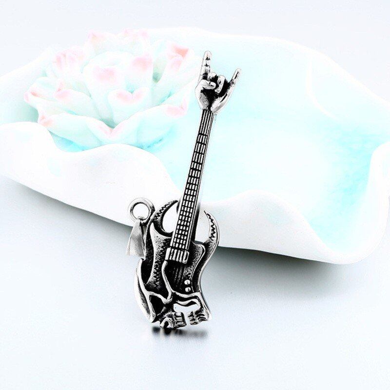 ステンレス パンク 岩 アクセサリー ファッション 岩 ヒップ ホップ スケルトン ギター 勝利 ジェスチャー 器械 ネックレス 344