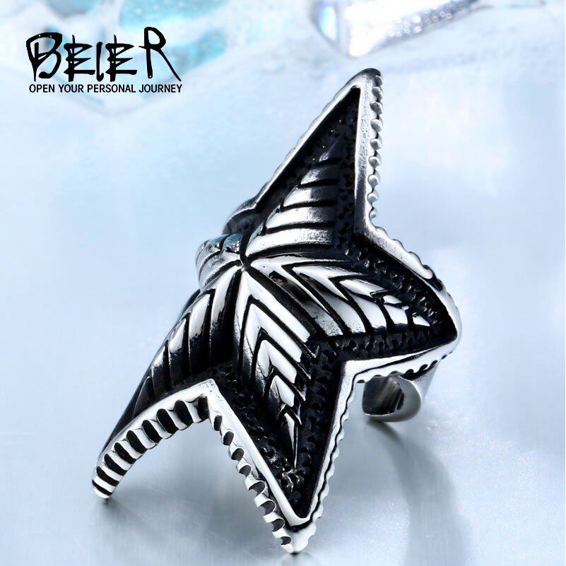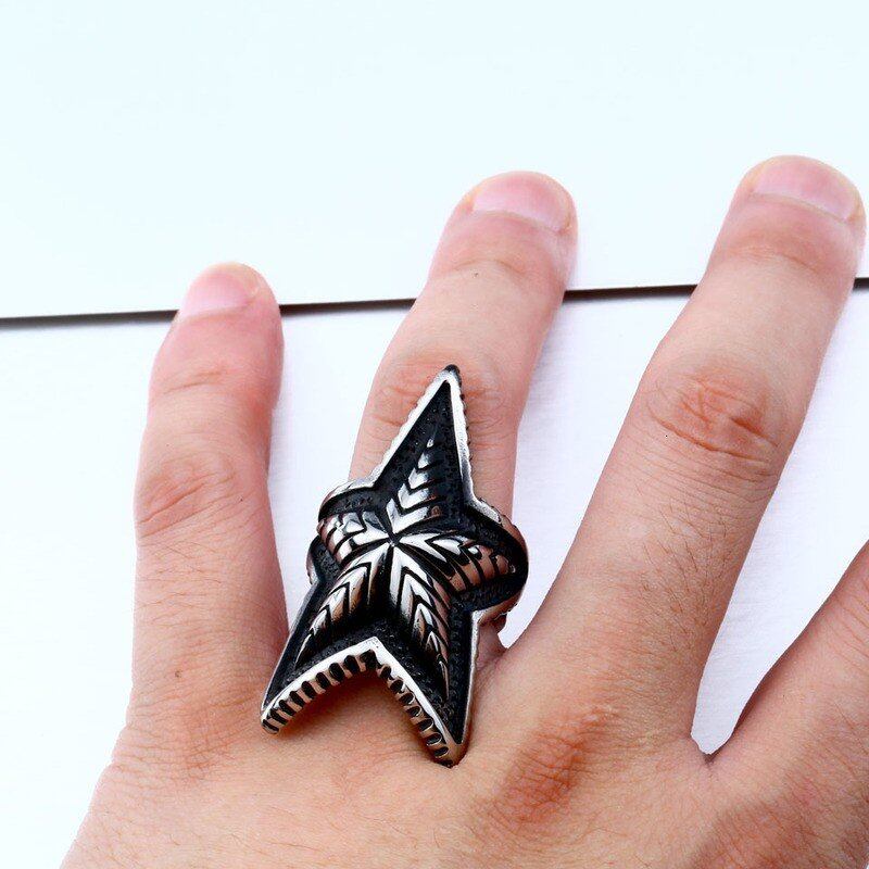 大きい 五芒星 メンズ メンズ ボーイズ 316L ステンレス クール パンク ゴシック 3D デザイン ファッション リング 413