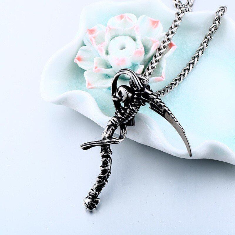 パンク チョーカー ステンレス チェーン ネックレス 死 大鎌 スケルトン ヘッドフォン ペンダント ステートメント ネックレス 311