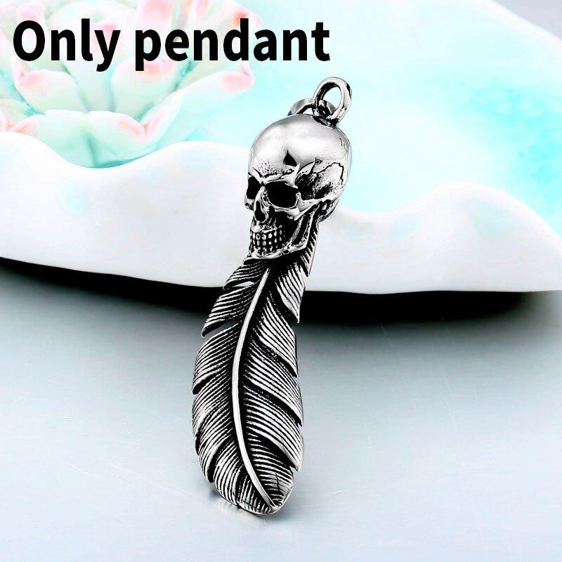 【送料無料】 メンズ ネックレス ステンレス 葉 チェーン フェザー スケルトン ペンダント チャーム チョーカー ゴシック 10000706