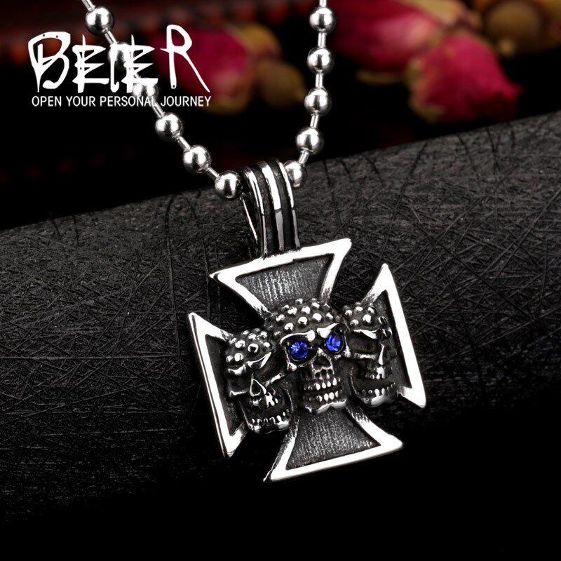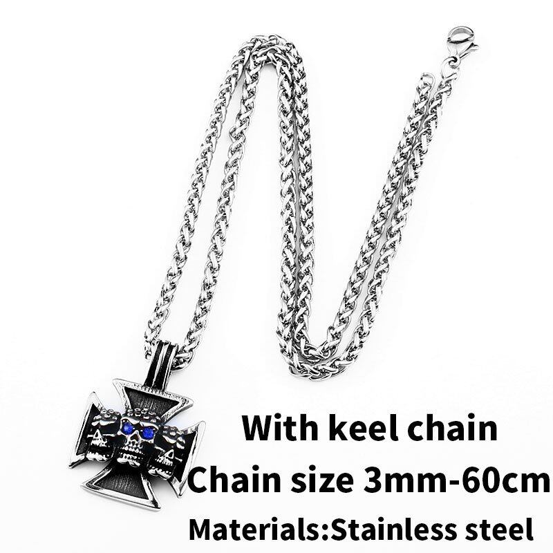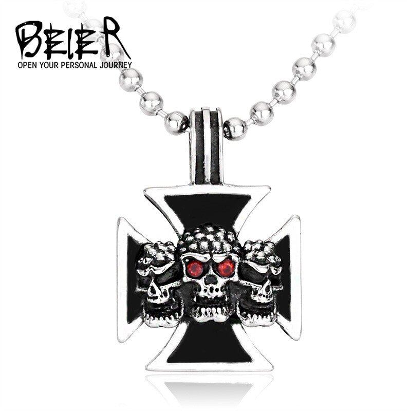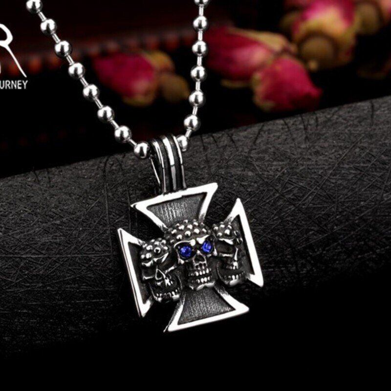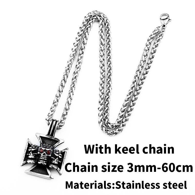 ステンレス トリプル スケルトン クロス 赤 レッド 眼 目 ペンダント ネックレス ファッション パンク ジュエリー 116