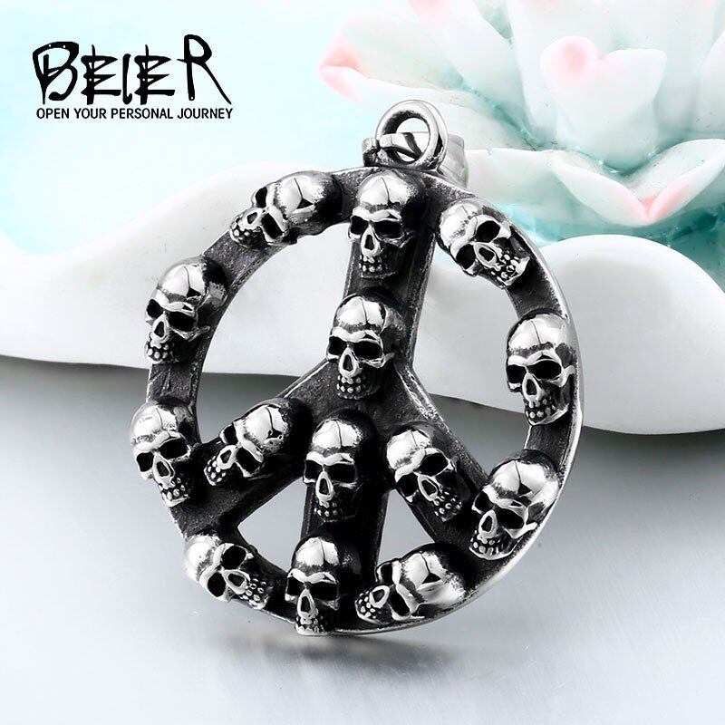 パンク 岩 ヒップ ホップ ステンレス 平和 サイン バイカー スケルトン ネックレス ペンダント チョーカー レディース ジュエリー 340