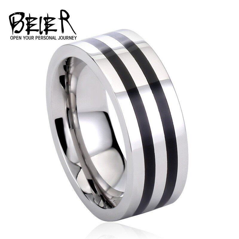 ファッション メンズ ポリッシュ ステンレス ダブル 黒 ブラック ストライプ リング ゴシック スタイル ベスト ギフト