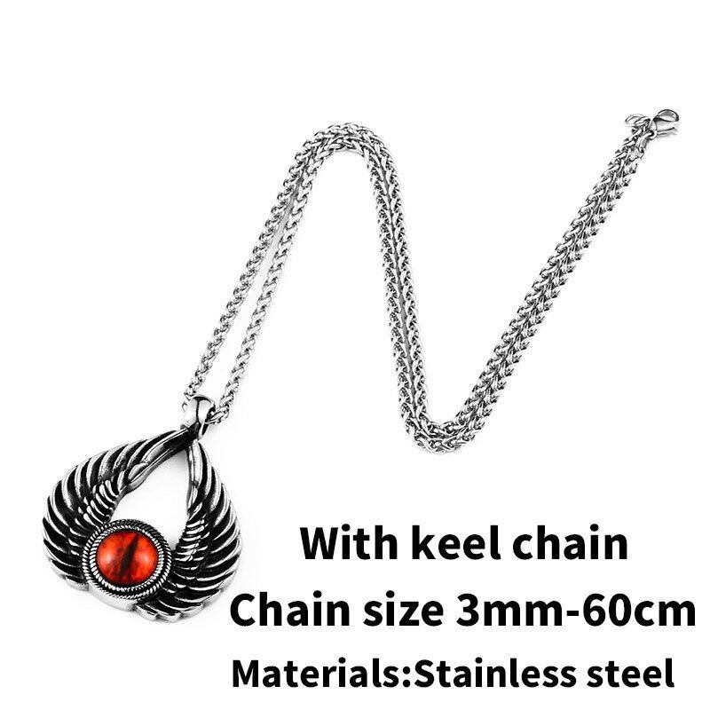 パンク ステンレス 翼 ウィング 悪の 赤 レッド 眼 目 フェザー ペンダント ネックレス レディース ビンテージ 左 ジュエリー 346