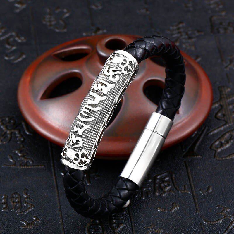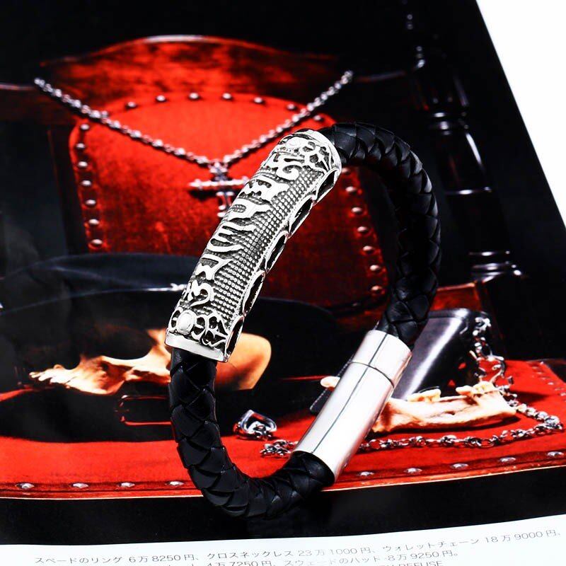 【送料無料】 メンズ ブレスレット チャーム レトロ チベット 教 メッキ タイ シルバー ロープ レザー 言葉 マントラ 10000799