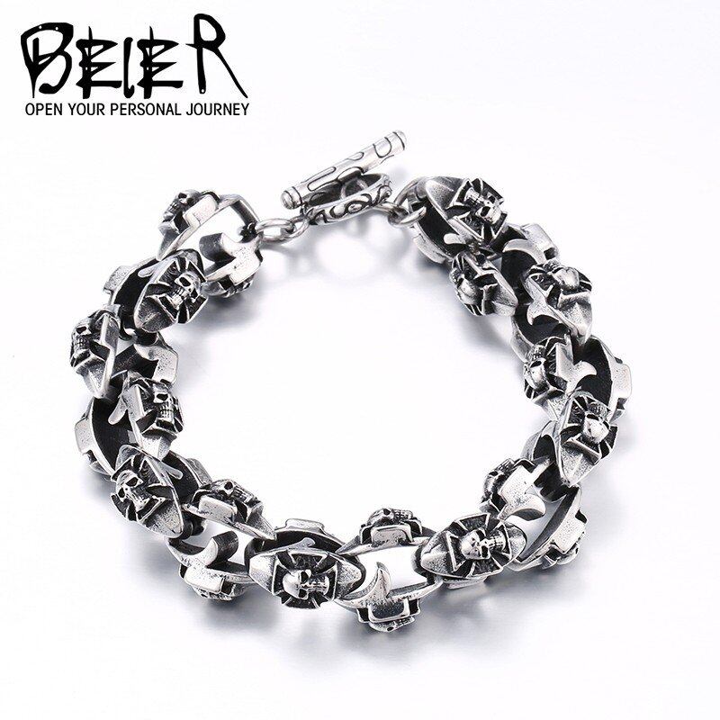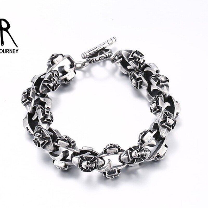 ブレスレット ステンレス ユニーク クロス スケルトン バングル チェーン ファッション メンズ ボーイズ パンク ジュエリー 016