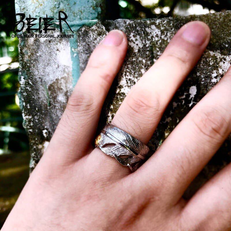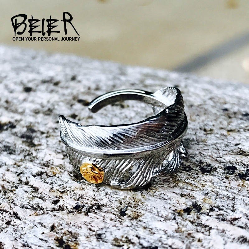 ステンレス ファッション 高橋 メッキ 白 ホワイト フェザー オープン ゴールド イーグル リング 人気 恋人 ジュエリー ユニーク 467