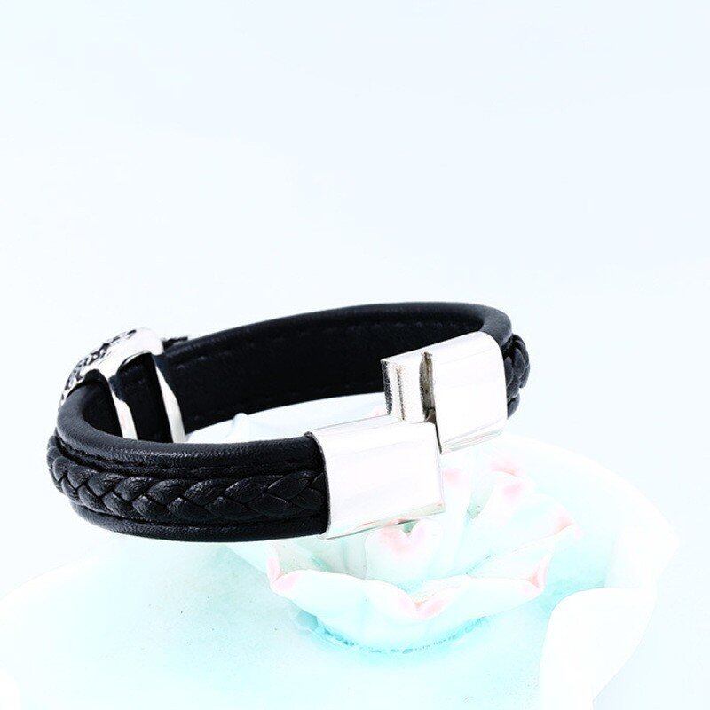 【送料無料】 メンズ ブレスレット バングル クール パンク スケルトン ステンレス LOVE レザー 10000859