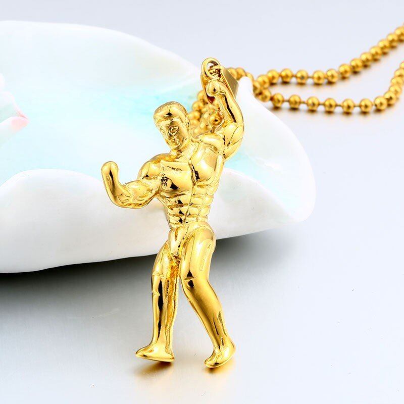 フィットネス 屈強 ペンダント ネックレス ステンレス チェーン シルバー ゴールド ヒッピー ネックレス 動機 ジム ヒップ ホップ ジュエリー