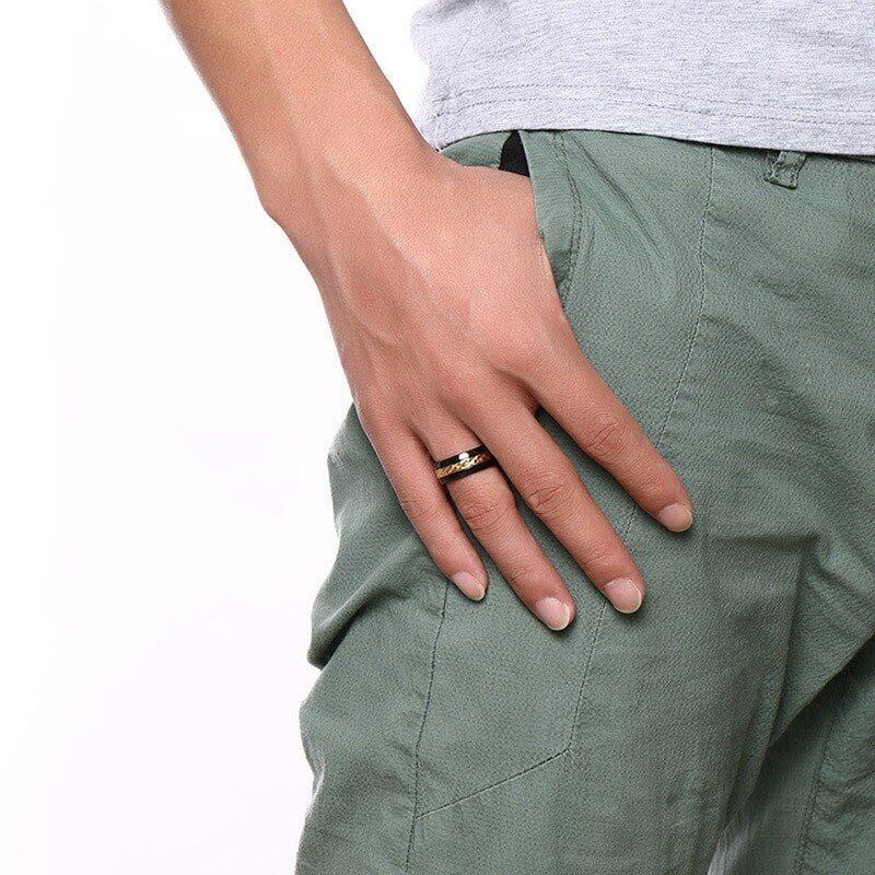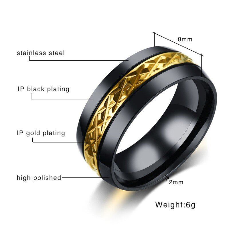 8mm ロンバス 不均等 表面 クール メンズ リング 指輪 ステンレス ブラック ゴールド カラー 錠剤 パンク メンズ USA サイズ #7#12