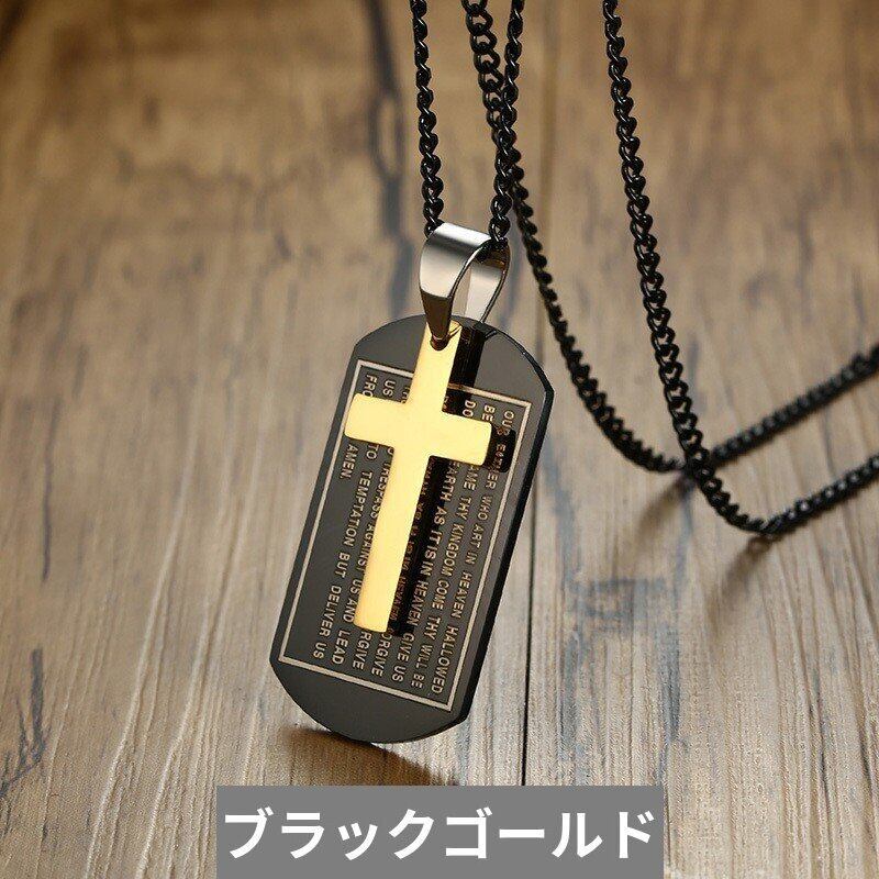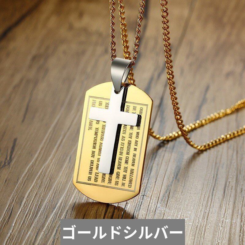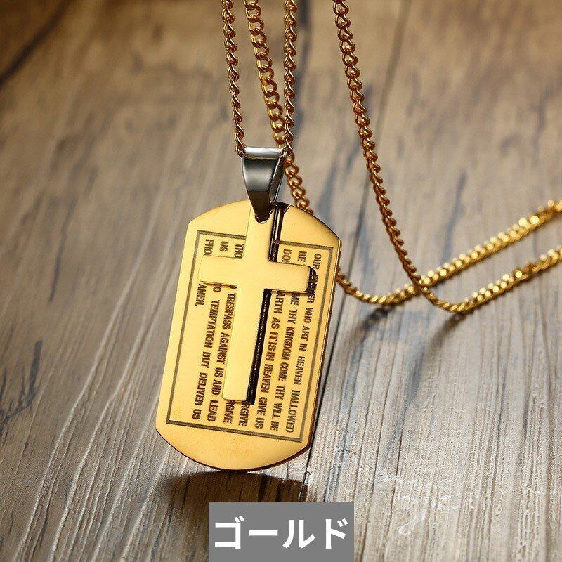 マルチカラー 犬 タグ クロス ペンダント メンズ ネックレス ステンレス キリスト 祈り アクセサリー